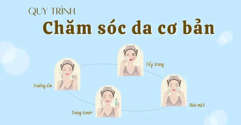 Thứ tự cơ bản: Tẩy trang – Rửa mặt – Dưỡng ẩm (có thể thêm bước đặc trị)